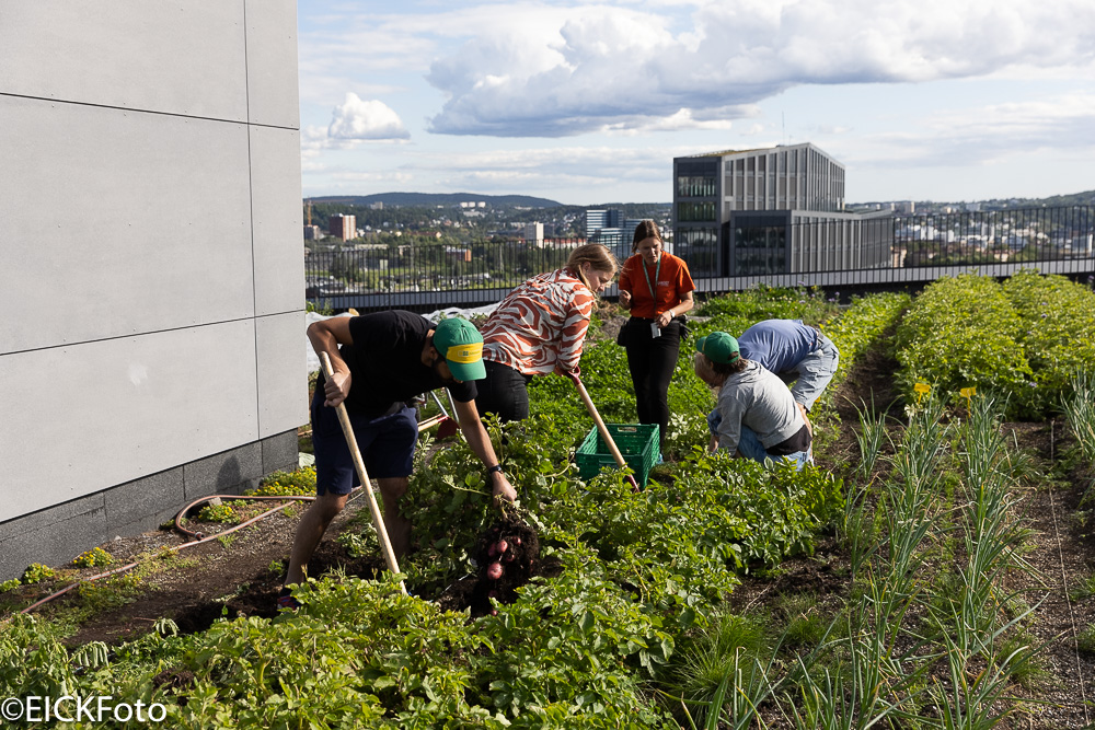 Hvordan kan et næringsbygg være en god nabo, bli en destinasjon og attraktivt for leietakere? Lag et spiselig tak, og åpne det for folk! Økern Portal har Nord-Europas største, spiselige takhage, etablert og driftet av U.Reist.