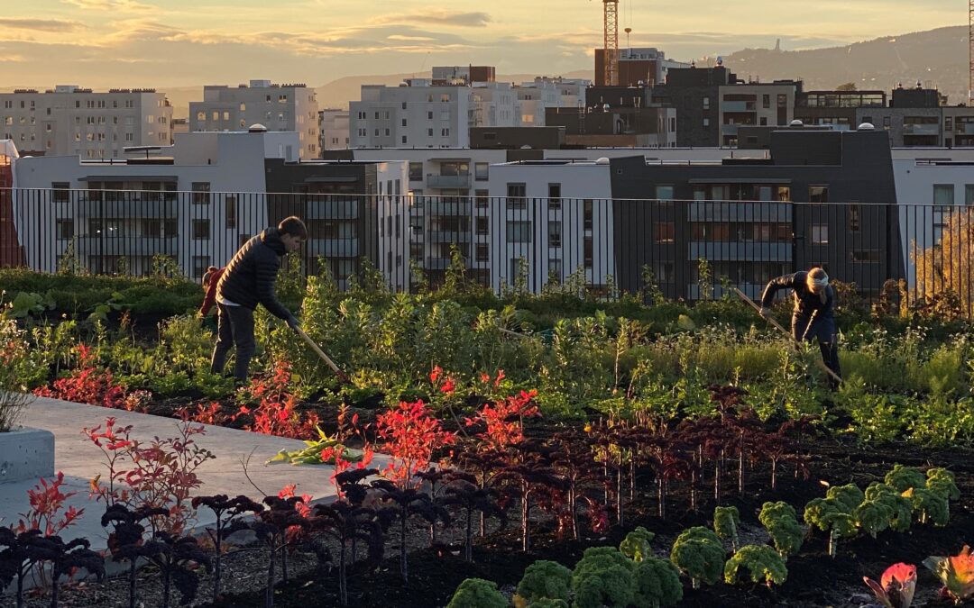 Takparken på Økern Portal er Nordens største spiselige takpark og mottok i dag (16. mars 2022) DOGA-merket for design og arkitektur.